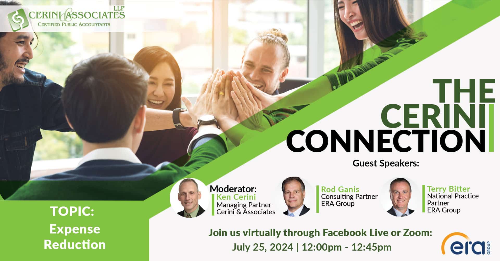 Join us for an insightful and practical webinar, “Cerini Connection: Expense Reduction,” hosted by Ken Cerini from Cerini & Associates, LLP. This session features an exclusive interview with industry experts Rod Ganis and Terry Bitter from the ERA Group.